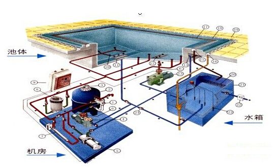 游泳池水質處理系統(tǒng)遵從動態(tài)平衡工作原理,在循環(huán)處理過程中達到水質的徹底凈化。