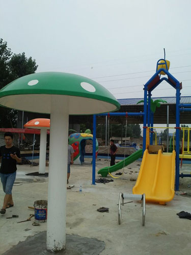 兒童游樂(lè)場(chǎng)內(nèi)有青蛙滑梯、彩虹圈、雨蘑菇、蘋(píng)果屋等。