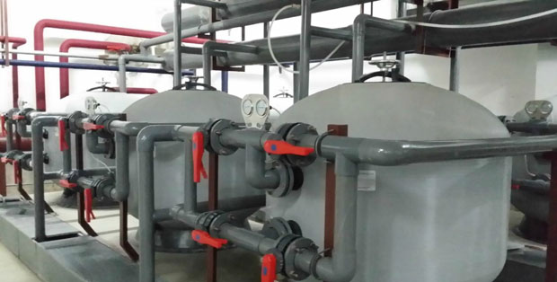泳池過濾設備過濾砂缸工作原理:
