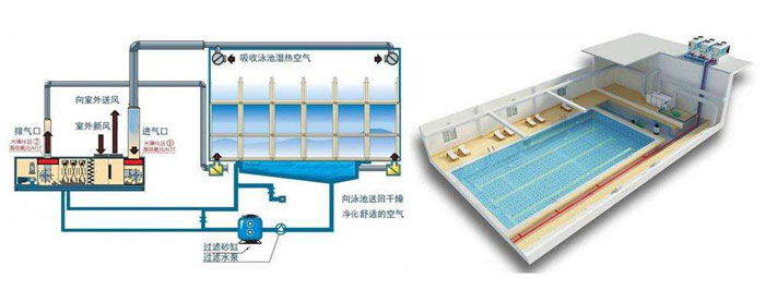 一、室內(nèi)恒溫游泳池水處理應(yīng)用熱水泵原理