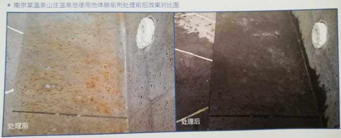 大面積池體著色或結(jié)垢:將本品按照10克/噸的用量投入池內(nèi),保持池水pH6.0~6.5,維持6~8小時,可解決池體著色與結(jié)垢問題。