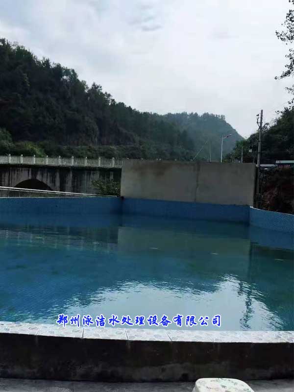 鄭州泳潔水處理設(shè)備有限公司于2018年3月與翁水青山度假村責任有限公司簽約,于2018年6月在甲方土建完工,具備安裝條件情況后進行設(shè)備安裝調(diào)試歷時1個月投入使用。甕水青山度假村水上樂園位于貴州省黔南布依族苗族自治州甕安縣銀盞鎮(zhèn)銀盞村杜仲河橋旁,占地面積2000平方米?傮w投資100萬元,包含人工造浪池、兒童池、KTV、等,水上游樂項目及水處理設(shè)備全部由鄭州泳潔水處理設(shè)備有限公司承建。