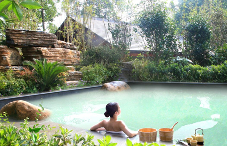 從室內(nèi)的藥池出來,到室外的露天池,商家對(duì)池水的溫度進(jìn)行了科學(xué)調(diào)控,有多種不同水溫的池子,剛從池水中出來,在秋夜的寒氣中感覺很冷,找了一個(gè)水溫較高的池子泡著,這個(gè)池子不大,只能容納十來個(gè)人。四周移栽有翠竹和常青樹。水池的石階邊有兩個(gè)出水孔,上面人工制成考究的石兌,不仔細(xì)注意看還難以發(fā)現(xiàn),一個(gè)是地下溫泉,一個(gè)是地下冷泉,混合而成適合人體的水溫。池中的水總是流動(dòng)著,一點(diǎn)都不渾濁,清澈見底。人入池中便碧波蕩漾,在燈光下,能清楚看到自己的腳趾頭。乳白色熱氣繚繞著飄向空中,感覺就是人間仙境。