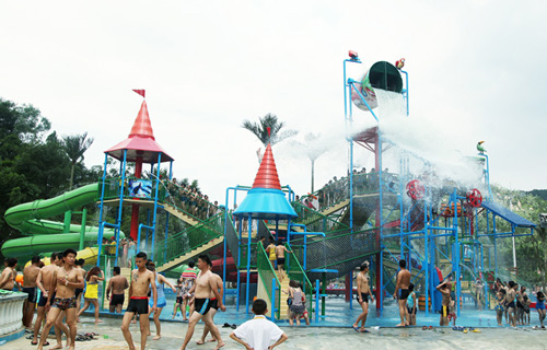 水賽在水上樂園占據(jù)了很多一部分的市場額,其中的互動性強烈。水滑梯個噴水水桶的結(jié)合更是成為了親子互動的主題。