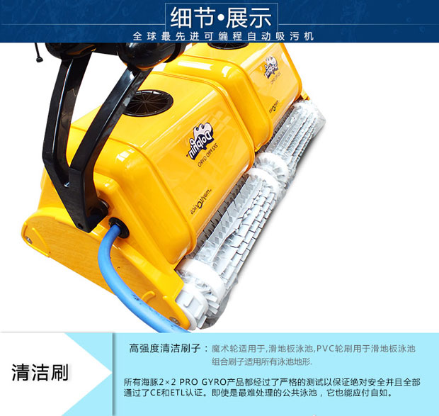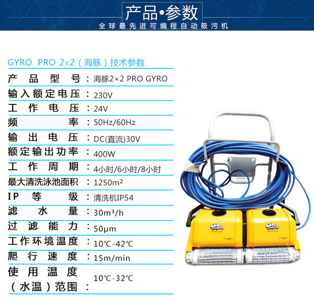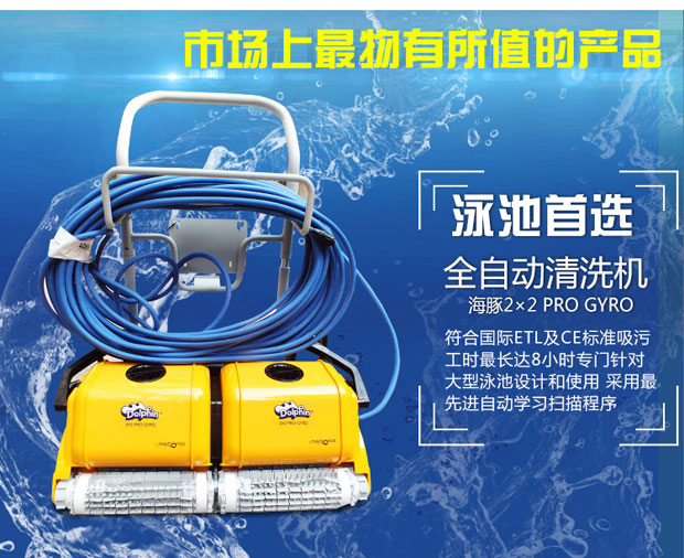 海豚2x2游泳池吸污機(jī)是以色列軍工轉(zhuǎn)民用產(chǎn)品代表,配電線防纏繞設(shè)備,配陀螺儀,標(biāo)準(zhǔn)直線行走,可爬墻清洗池壁及水線,近幾屆奧運(yùn)會指定使用產(chǎn)品,全球市場份額40%。