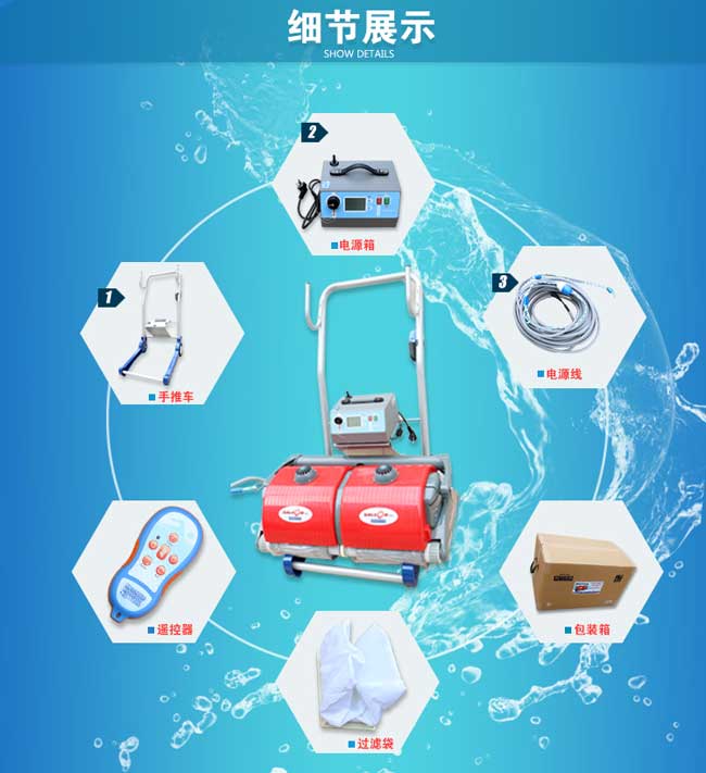 作為合格的水質(zhì)管理員應(yīng)知道泳池水處理中有一項池底清潔處理工作必須用到游泳池吸污機,也叫水下吸污機,水龜?shù),主要針對池水中的皮屑、頭發(fā)、樹葉、塵埃等臟物進行清潔,使水清澈透明。